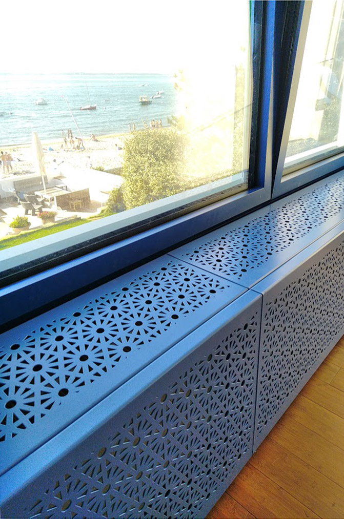 Les menuiseries existantes ont été déposées et remplacées par de grands ensembles en aluminium, offrant de meilleures performances thermiques et une durabilité accrue. Une fausse ferme et un poinçon, éléments typiques de l’architecture locale ont été ajoutés pour redonner du cachet au bâtiment. Le choix d’une teinte bleu fait écho à l’eau du bassin d’Arcachon situé à quelques mètres du jardin.