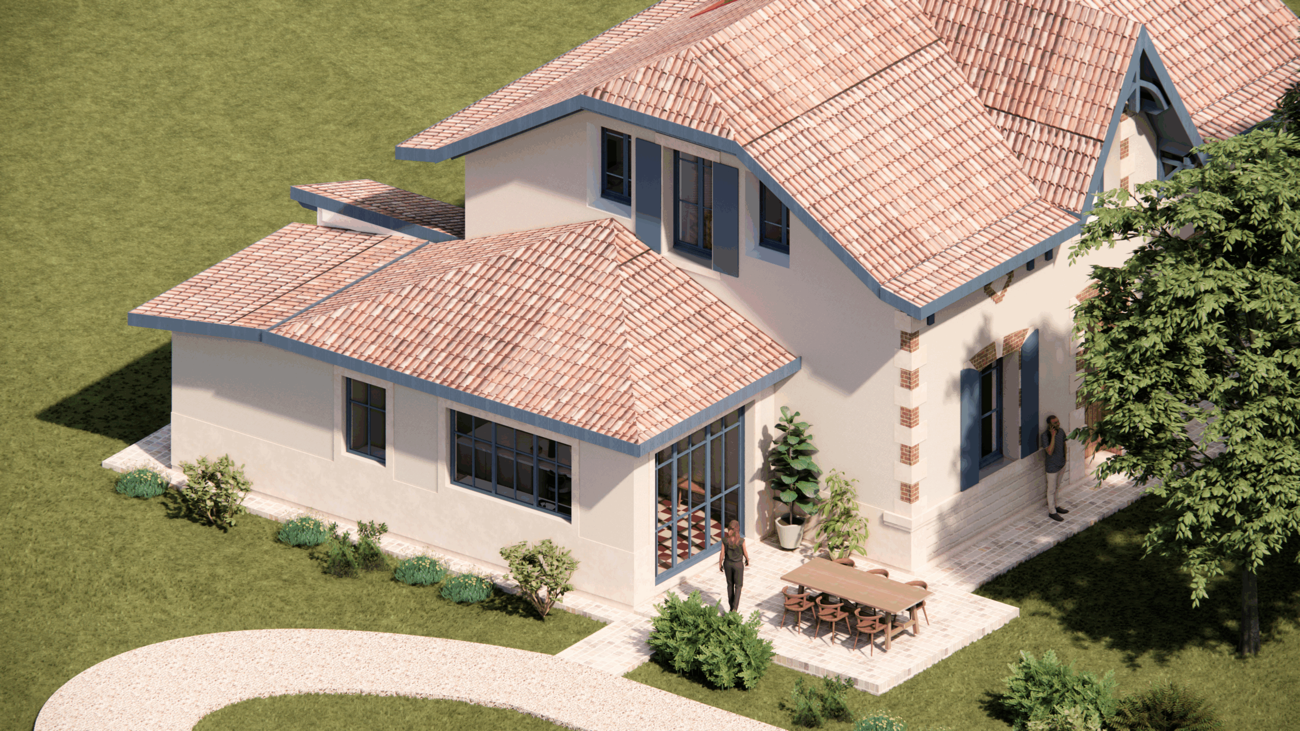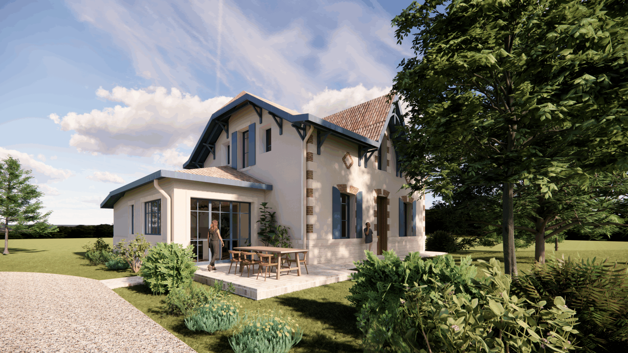 PLA2506 Rénovation et extension d’une maison d’habitation – SALLES (33770) Mission complète Programme: une suite parentale, quatre chambres, deux salles de bain, un coin lecture, une salle à manger, un séjour, une cuisine ouverte, une buanderie, une terrasse Surface : 170 m² Etudes en cours